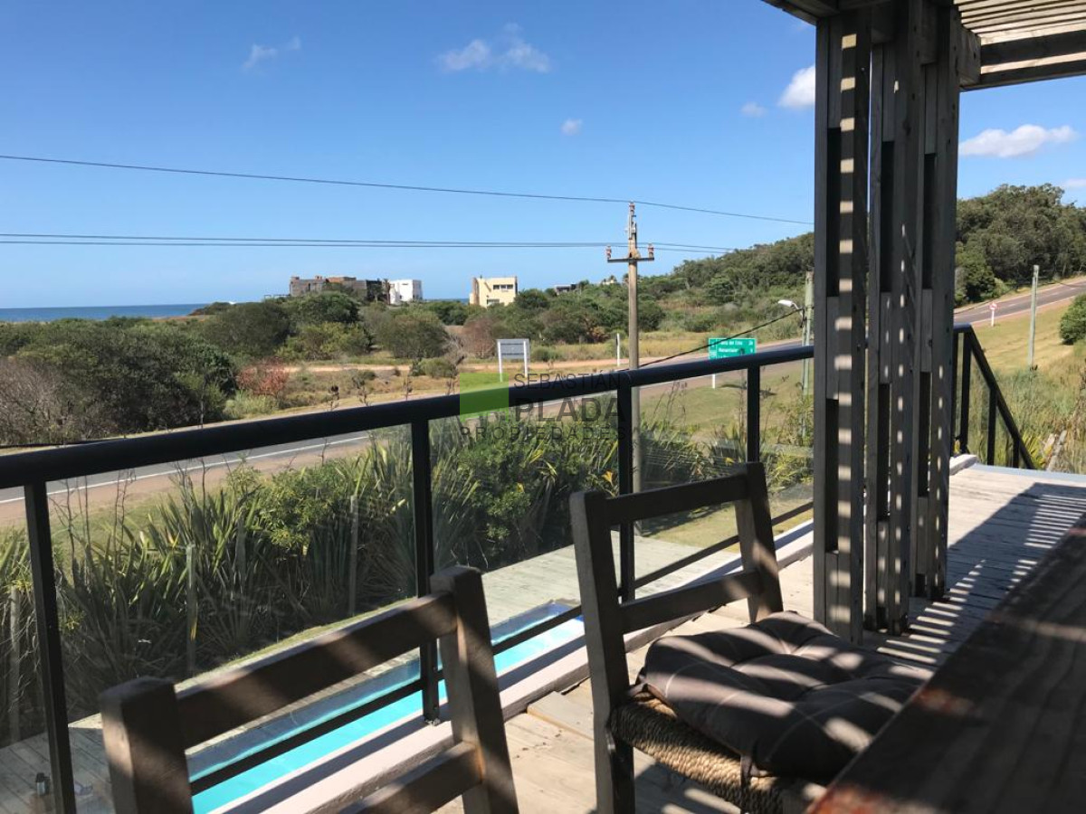 ¡Hermosa casa frente al mar! Moderna Construcción. Vista al mar. 3 dormitorios con 3 baños en suite, vista al jardín y a la piscina en planta baja. En planta alta se desarrollan la sala comedor con la cocina integrada, amplios ventanales hacen del óceano el marco de nuestra estancia. El parrillero-asador en la terraza nos integra al Atlántico que podemos sentir a escasos metros. Ideal para disfrutar de la paz del lugar, cercana a José Ignacio (7km) y sólo 15 minutos de Punta del Este.